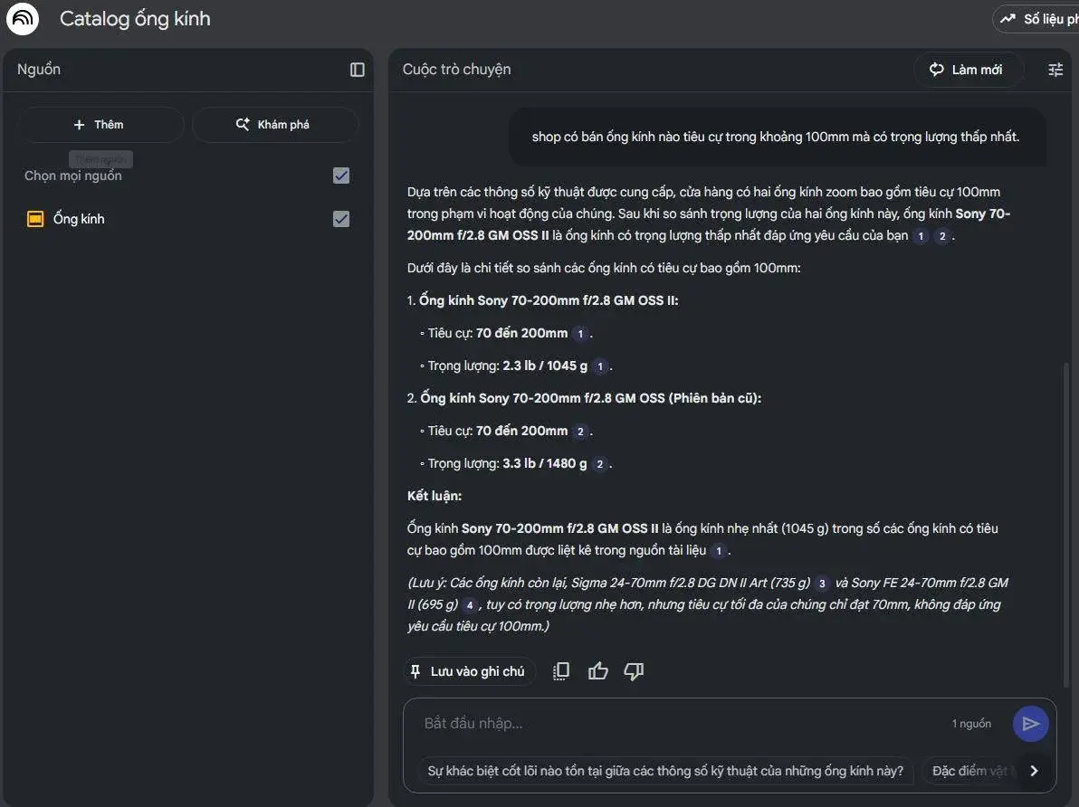 Ví dụ, phòng sản phẩm có thể cập nhật toàn bộ danh mục sản phẩm lên Google Slide; khi đó, đội ngũ sale và marketing có thể tiếp cận thông tin và hình ảnh sản phẩm một cách nhanh chóng và trực quan với chất lượng tốt thông qua NotebookLM và gửi cho khách hàng.